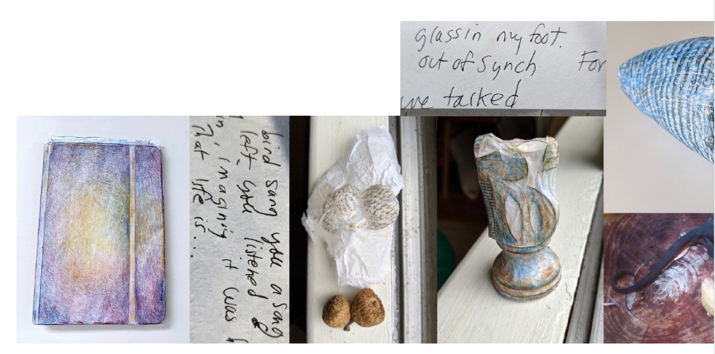Materials gathered in translucent baggies and mailed by my sister from Women’s Land.