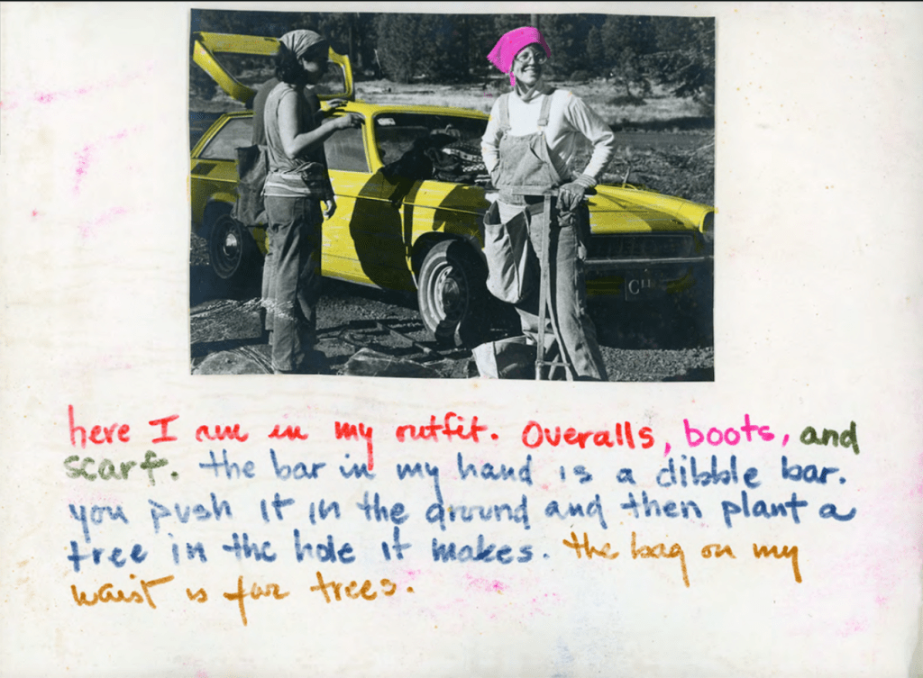 My sister gifted me an archive of letters and objects from Women’s Land that tell stories about her lived experiences. I remember her as an activist and environmentalist, a generous friend and caring sibling. My cig gender privilege created a noticeable difference of access to education, healthcare and other community resources. These differences separated us in many ways, but for this project, I focus on our connections and reach across borders and categorizing systems. Through this touch and material engaged writing practice affirmative narratives emerge that are more complex, joyous, challenging, mundane. On Women’s Land, my sister got a fresh start to begin healing, lived, played and worked on a land co-owned and run with equal access to agriculture, shelter, and festivities. Herstory merged with this LGBTQ+ movement, while collectively caring through stewardship and social activism. Moved by our correspondence during her residence on Women’s Land, I created this rubbing/remembrance writing activity rooted in solidarity, moving across time, geographies, histories, and identities.