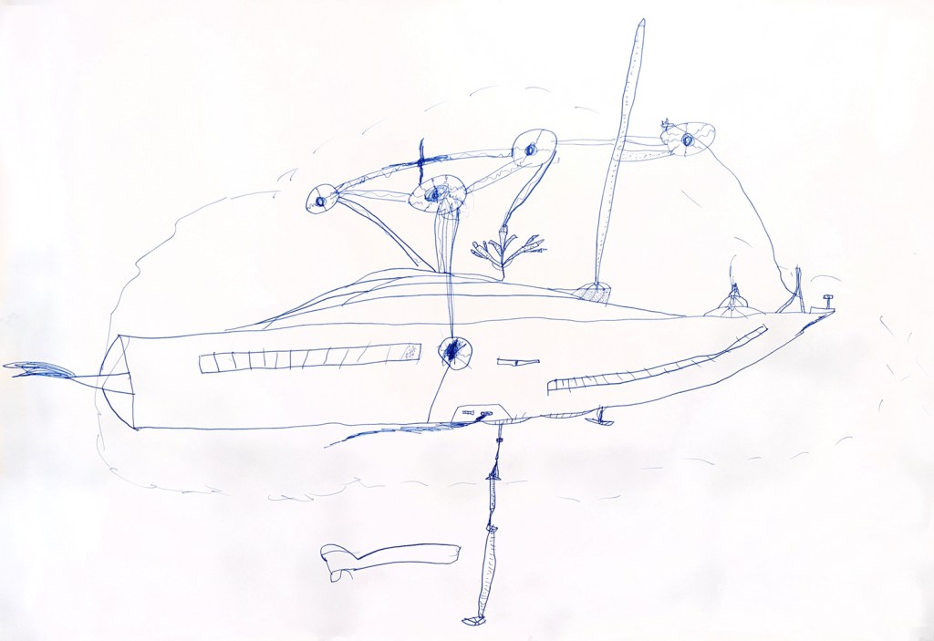 A series of mixed media boats touch on sublime experience, conjuring Turneresque passages through the watery milieu. Reportedly, Turner was hurt by the criticism of his painting Snow storm repeating “soapsuds and whitewash” over and over again, and saying, “What would they have? I wonder what they think the sea’s like? I wish they’d been in it”.