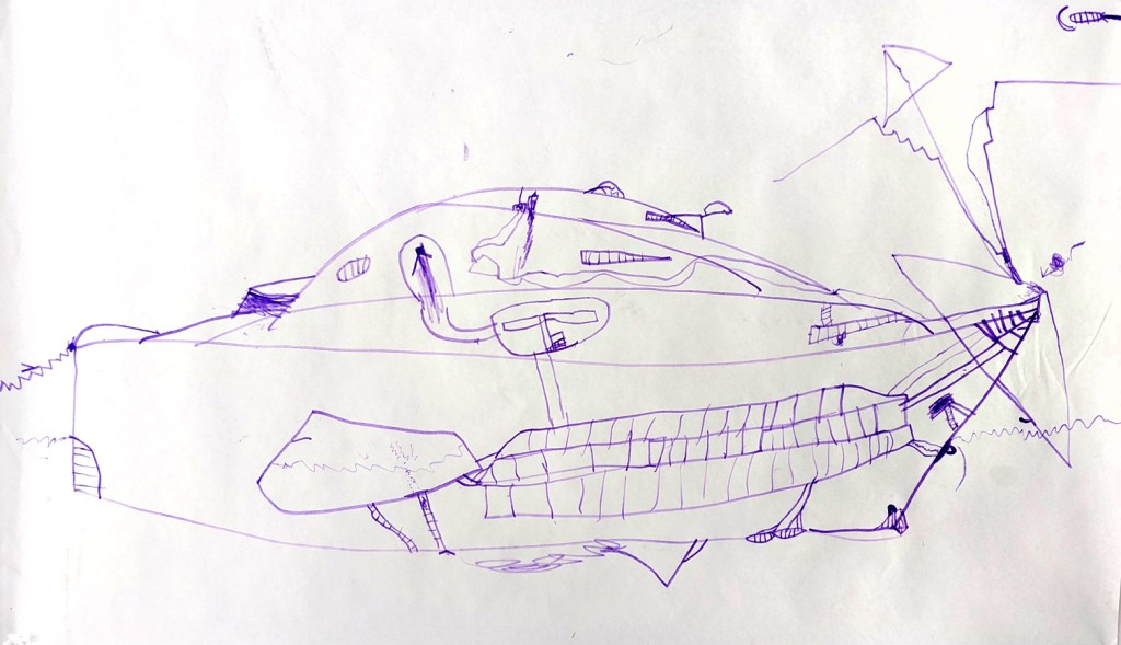 This purple larker drawing is the first created to voyage the waterways throughout the city of Columbus. Arlo’s favorite museums, libraries, and maybe even his own school are of all ports considered for entry. He is curious to learn how his idea will be transformed by others in his community – especially in spaces out of reach since the pandemic.